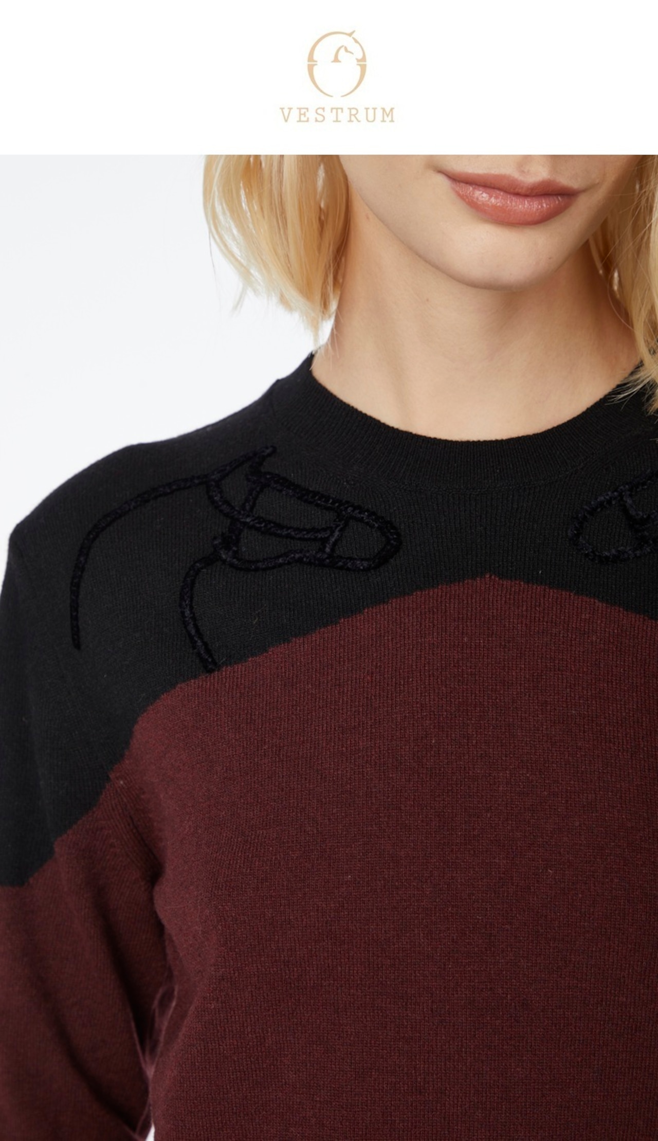 デザイン面では、前面に縫い付けられたシェニールの乗馬アプリケーションとエレガントさを持ちながらも普段使いに適したシンプルなスタイルが特徴。さまざまなボトムスとの相性が良く、女性らしいラインを引き立ててくれる一着です!左下にはスタイリッシュなVestrumのロゴが施されています。