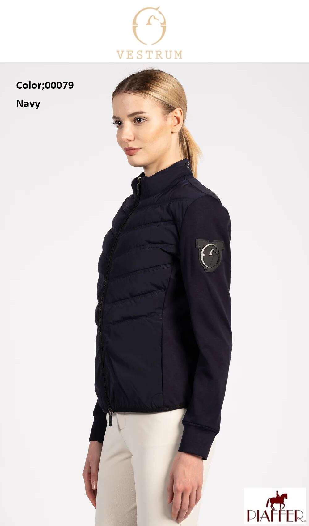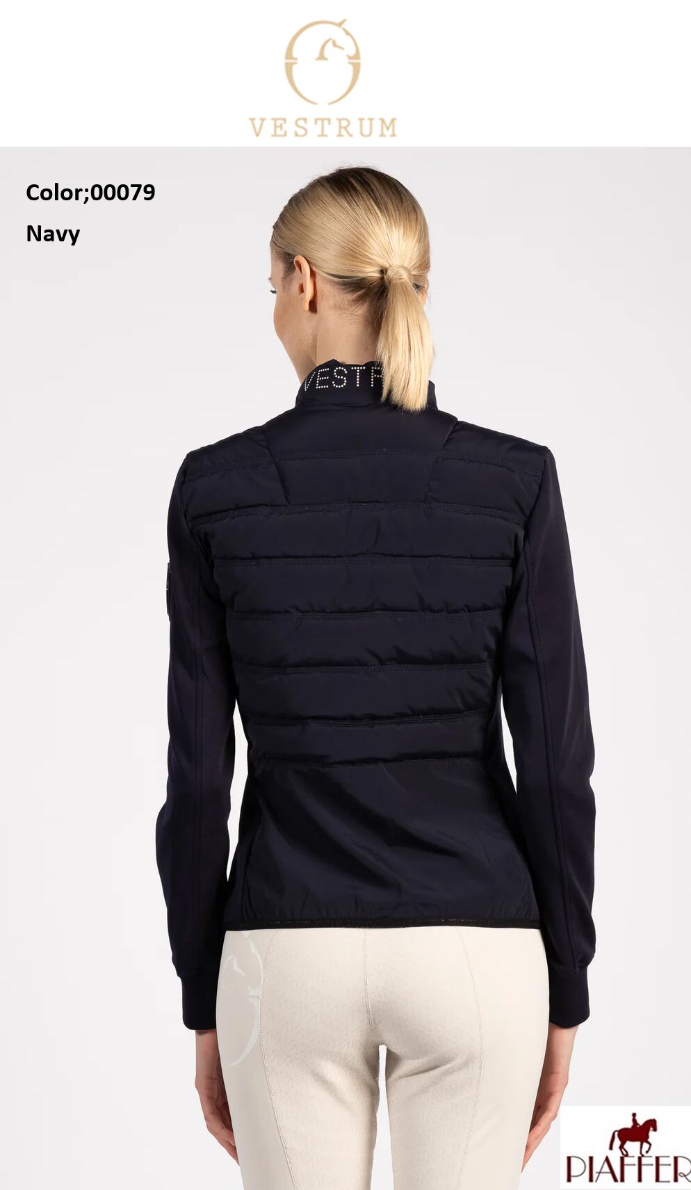 フォーマンスを犠牲にせず動きを愛する女性のためにデザインされています。ジャケットは防水布で斜めに詰められたパッドが使われており、寒さから守ります。フリースリーブは柔軟性と快適さを保証し、鞍上でもあらゆる動きに寄り添っています。デザインは右肩にヴェストラムのロゴ、首の後ろにヴェストラムの文字で完成しています。