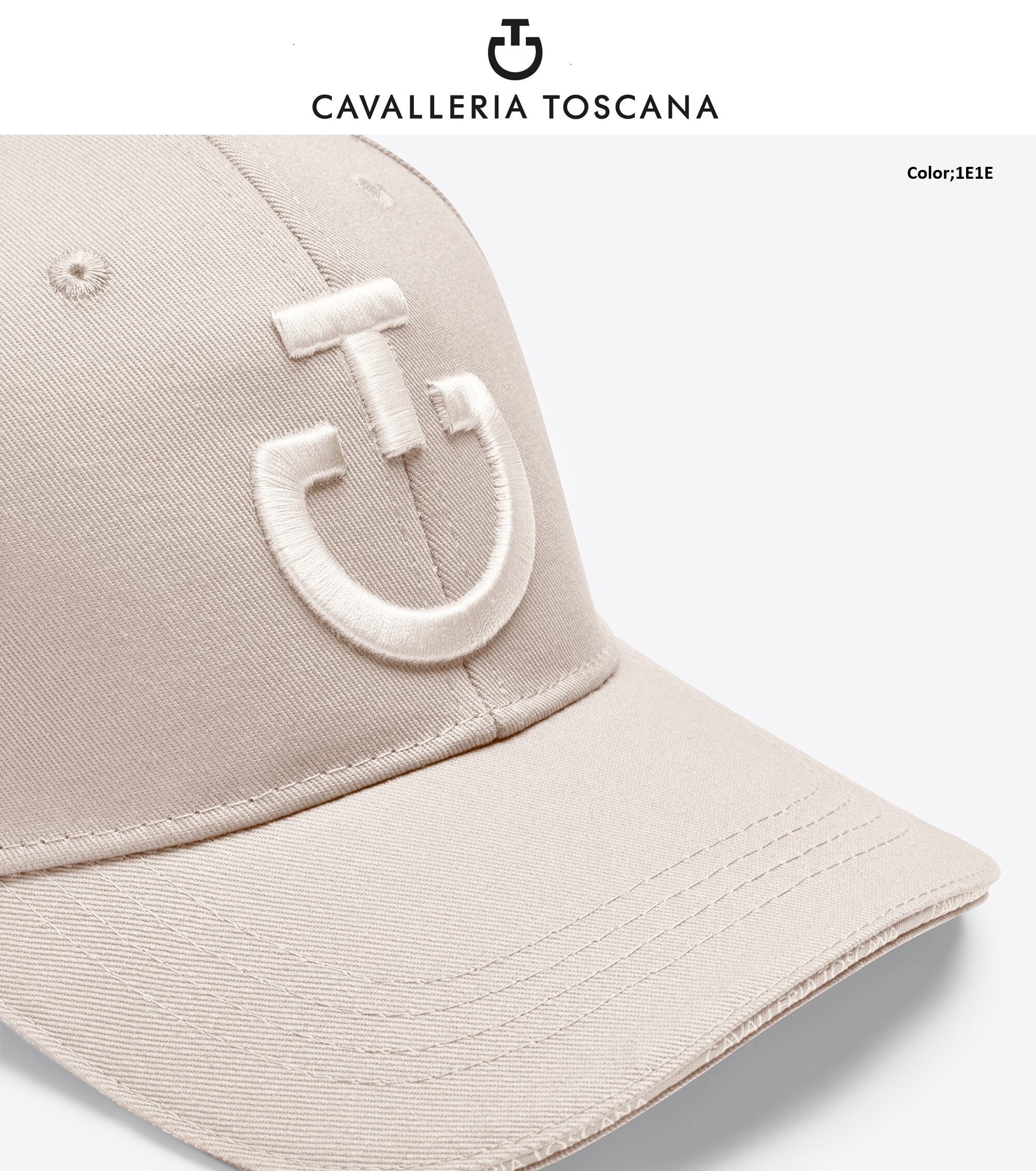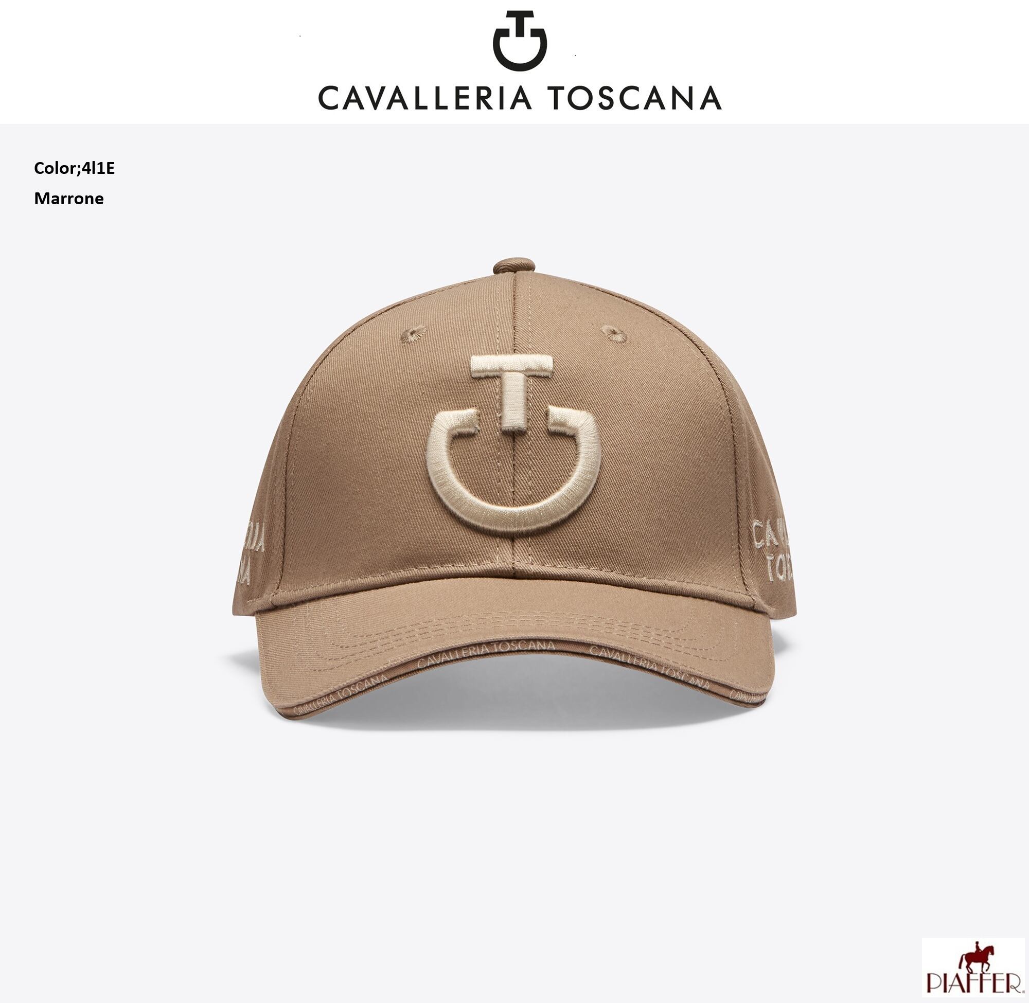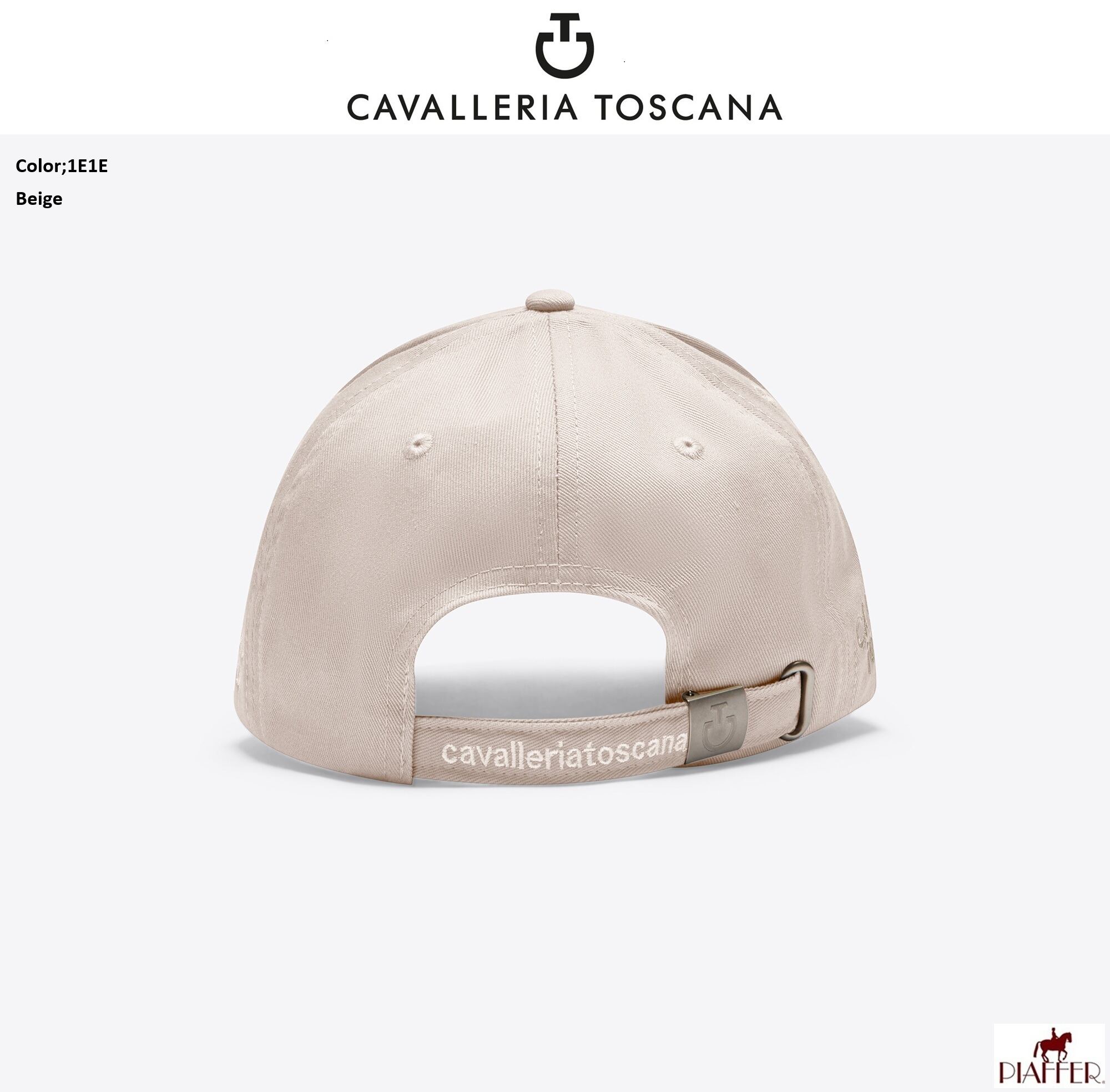 太陽の光から目を保護するカスタムバイザーとフィット感を調整するための背面のストラップを備えた純粋な通気性のある綿で作られています。ブランドの美学へのグラフィックリファレンスが豊富で、中央にマキシカヴァレリアトスカーナチームの刺繍が特徴です。